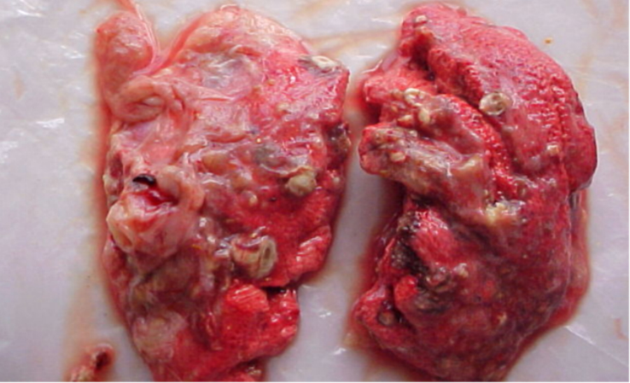 • Đóng kén Fibrin thành ống → Gà bị viêm phổi ORT