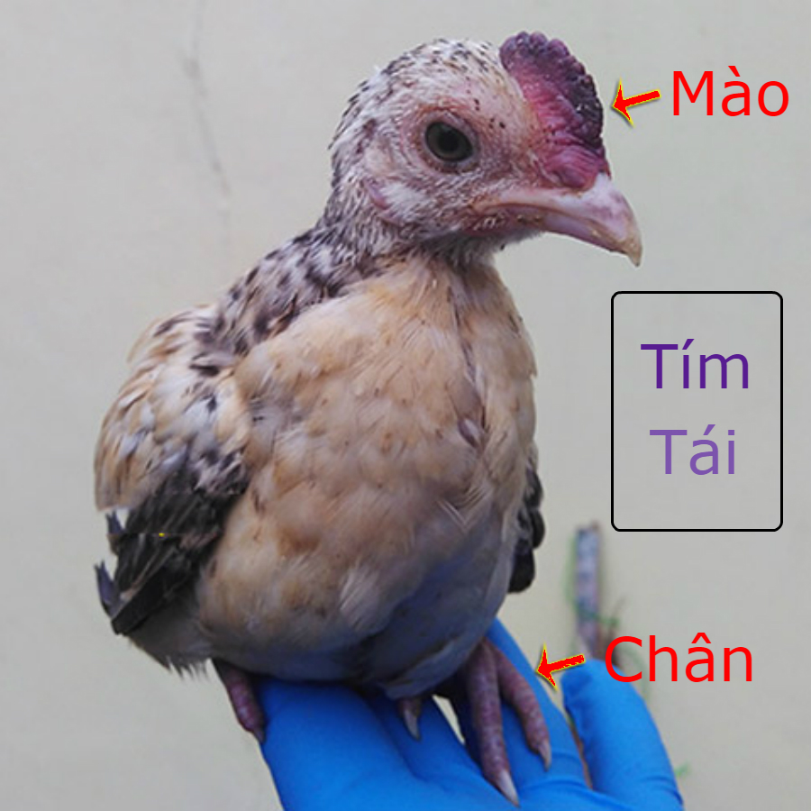• Mào tím tái → Gà bị Tụ Huyết Trùng, Cúm hoặc Đầu Đen