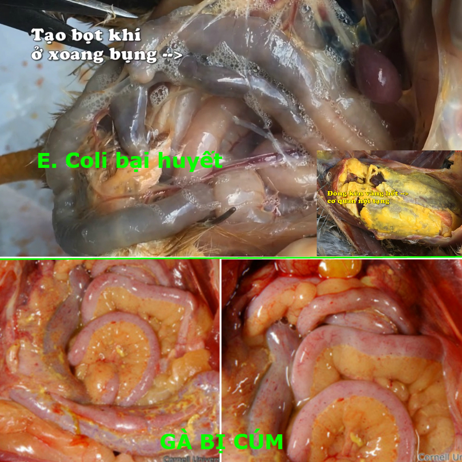 • Màng Gan có lớp phủ Vàng → Gà bị E.Coli