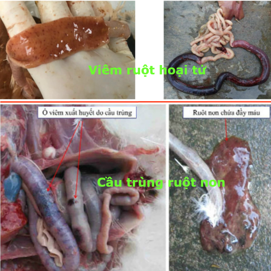 • Ruột xuất huyết điểm hoặc hoại tử cả một đoạn → Gà bị viêm ruột hoại tử
