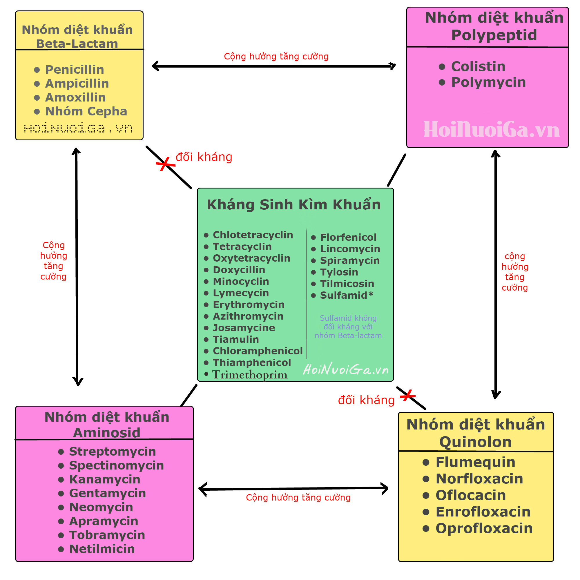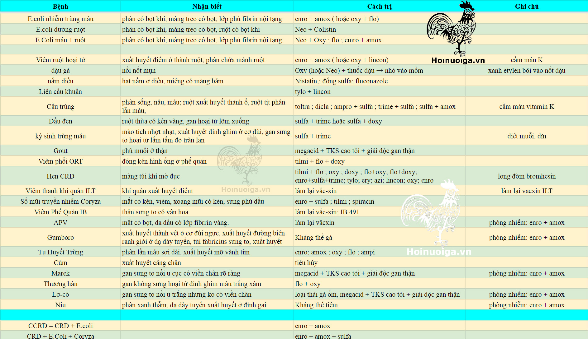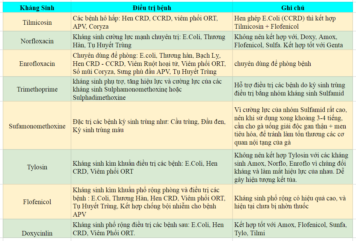 • Bảng nguyên tắc phối trộn và sử dụng kháng sinh cho từng bệnh